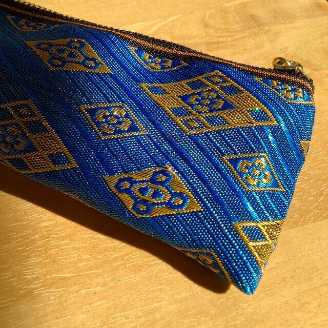 美しい青と金色で花菱模様が織られた畳縁で作ったペンケースです。