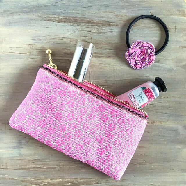 明るいピンク色が眩しい、なでしこ柄の畳縁で作ったペンケースです。