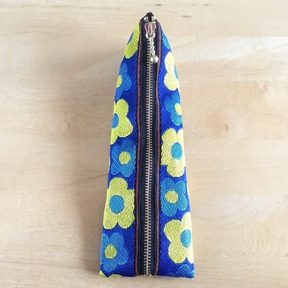 ブルー系なので、落ち着きもある畳のヘリで作ったペンケースです。