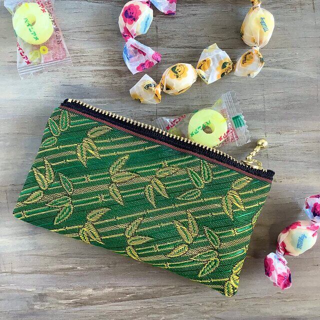 縁起の良い竹の柄の畳縁で作ったミニポーチです。