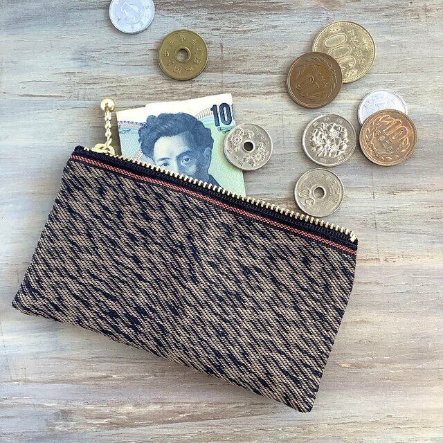 と、ちょっと不思議な気持ちになる個性的な柄の畳縁で作ったミニポーチです。