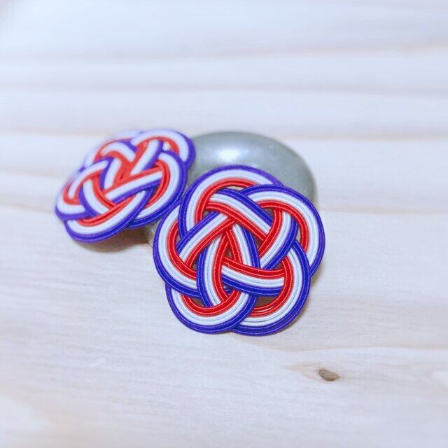 爽やかなトリコロールカラーの水引で作った耳飾りです