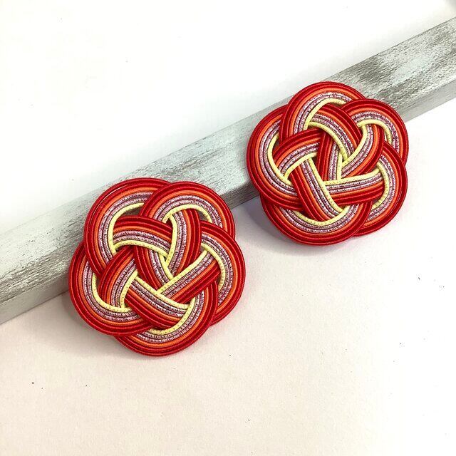 日本の伝統色を重ねて作った、渋めだけど華やぎもある耳飾りです。
