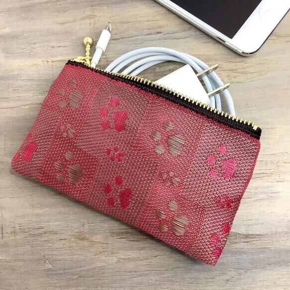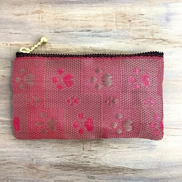 キュートな肉球柄の畳縁で作ったミニポーチです。