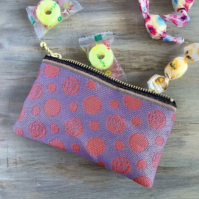 水玉と薔薇柄が愛らしい畳縁で作ったミニポーチです。