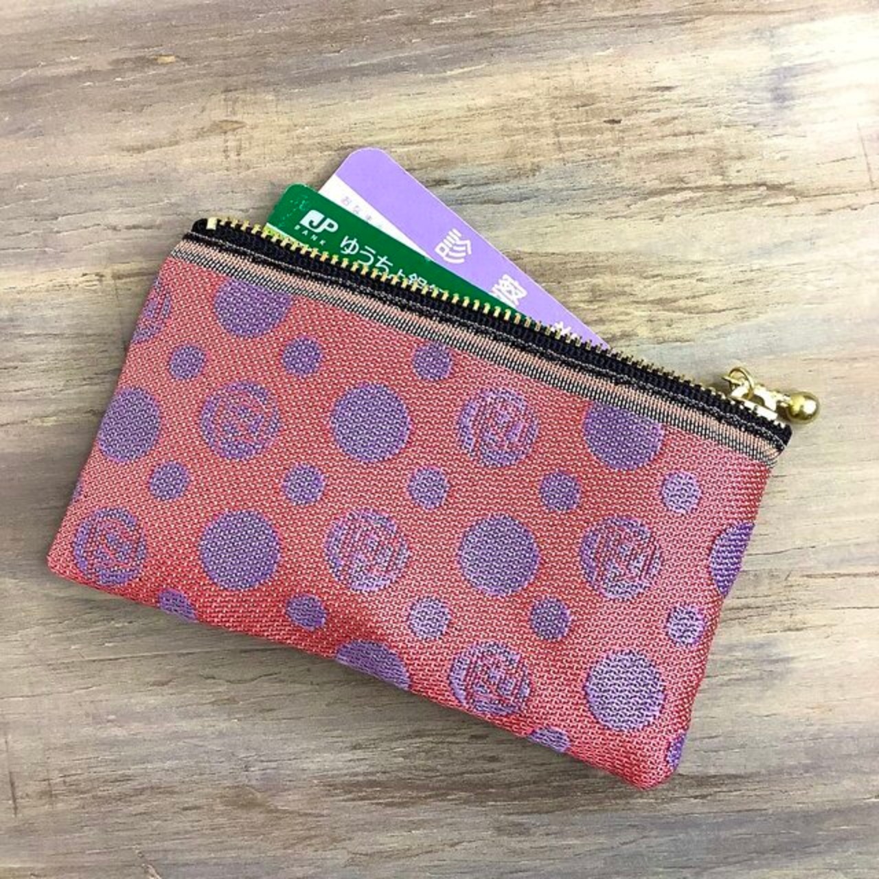 水玉と薔薇柄が愛らしい畳縁で作ったミニポーチです。