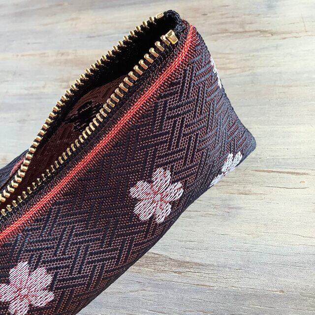 白く浮かび上がる桜が印象的な畳縁で作ったペンケースです。