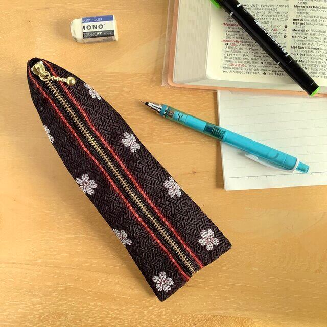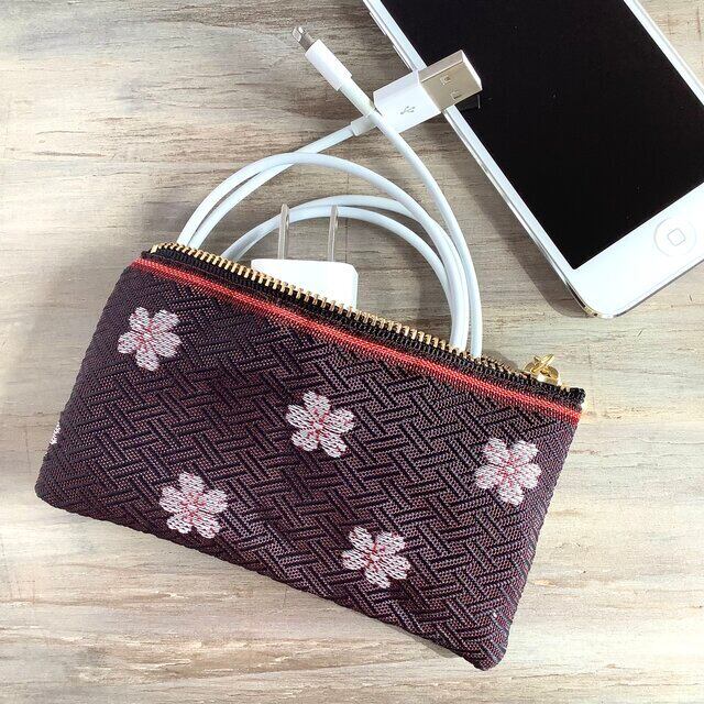 白く浮かび上がる桜が印象的な畳縁で作ったミニポーチです。