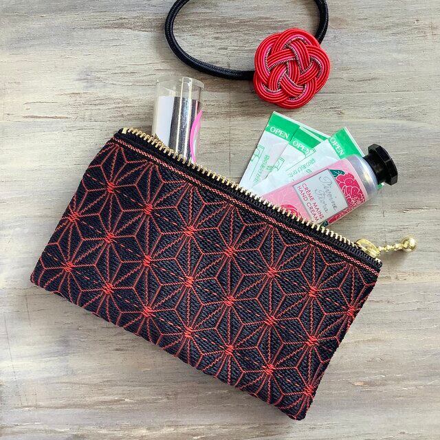 麻の葉をあしらった畳縁で作ったミニポーチです。