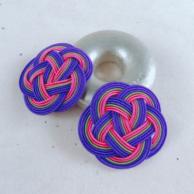 日本らしい、花菖蒲のような美しい紫系の水引でまとめた耳飾りです。
