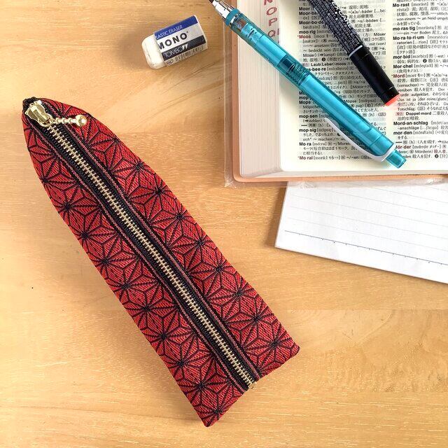 麻の葉をあしらった畳縁で作ったペンケースです。