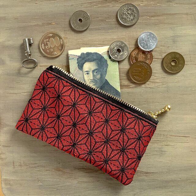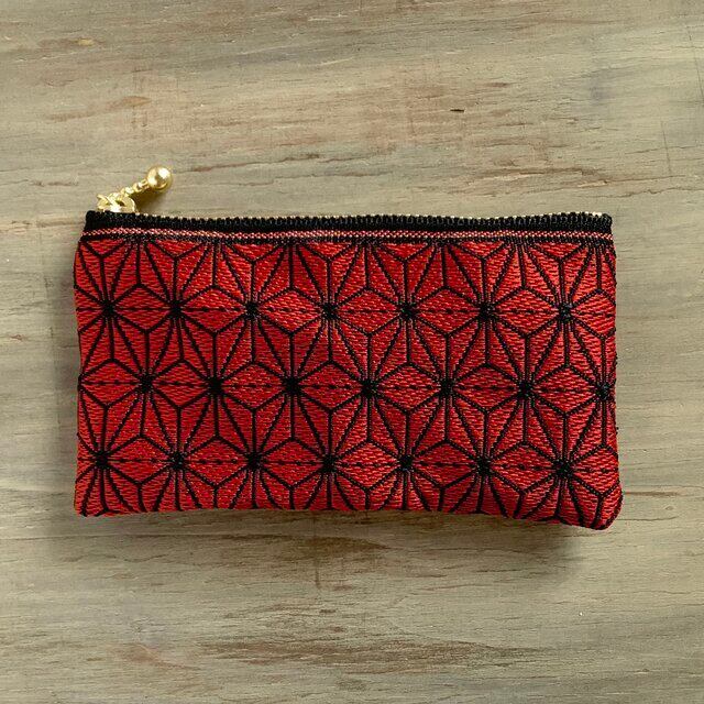麻の葉をあしらった畳縁で作ったミニポーチです。