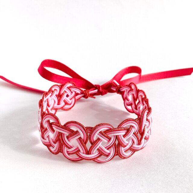 ピンク系のグラデーションが愛らしい水引製の首輪です。