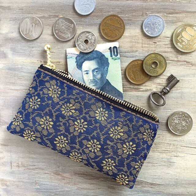 オリエンタルな更紗風の花柄の畳縁で作ったミニポーチです。