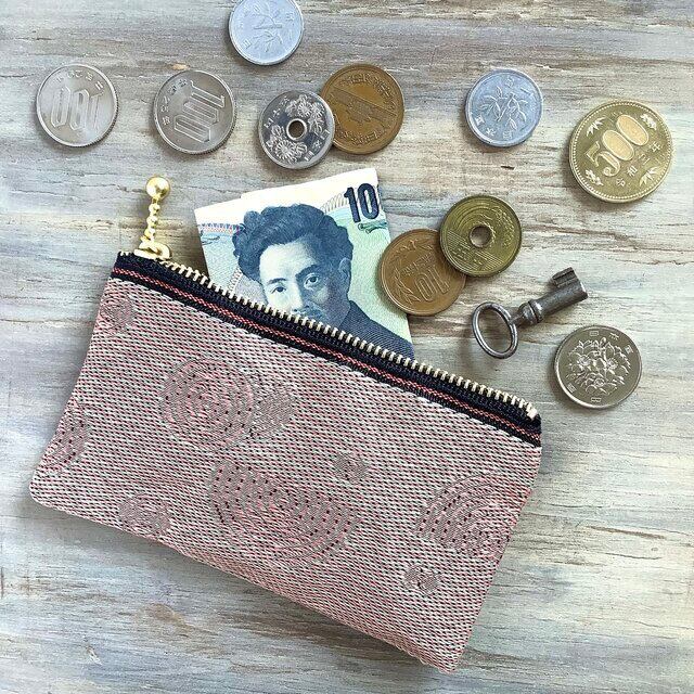 禅寺にある枯山水のイメージでデザインされた畳縁で作ったミニポーチです。
