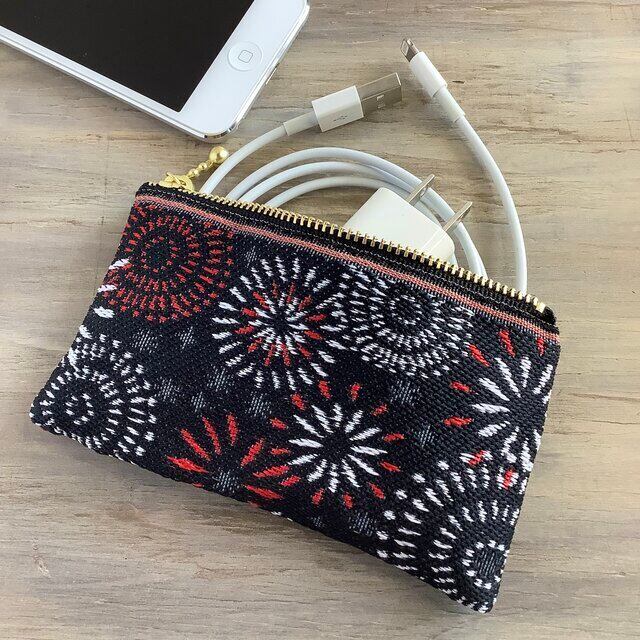そんな花火を織り込んだ畳縁で作ったミニポーチです。