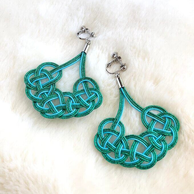 水引で一つずつ丁寧に作った、オリエンタルなイメージのピアスです。