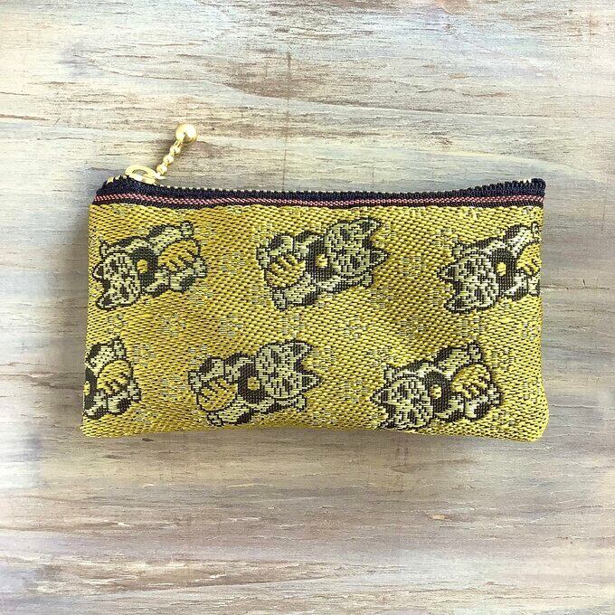 和風でキュートな招き猫柄の畳のヘリで作ったミニポーチです。