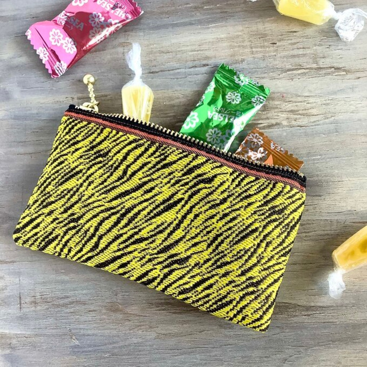 ユニークな虎柄の畳縁で作ったミニポーチです。