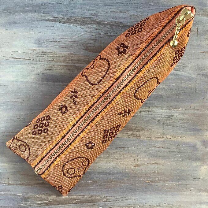 ユニークで可愛い、カエルと鳥の柄の畳縁で作ったペンケースです。