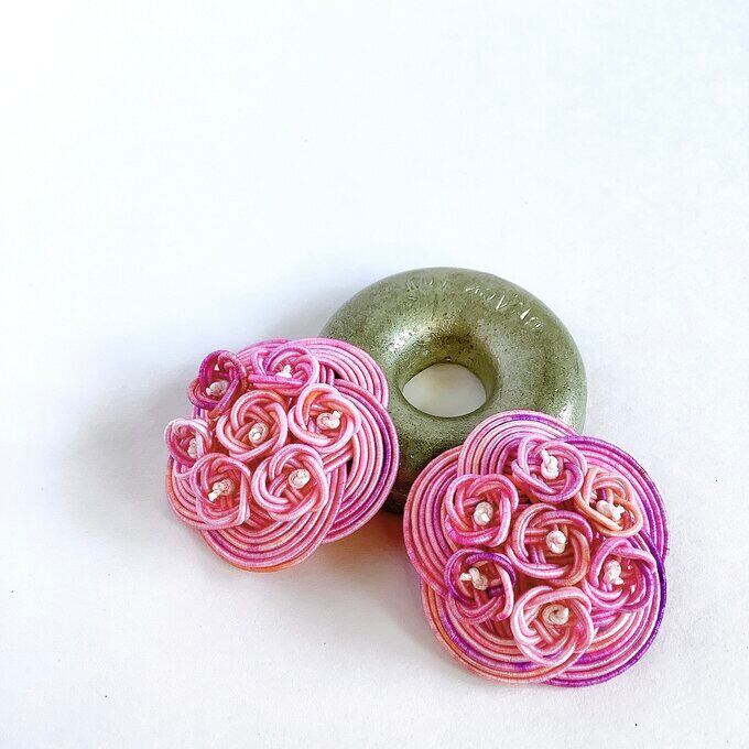 ピンクカラーのアナベル(西洋紫陽花)をイメージした耳飾りです。