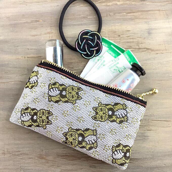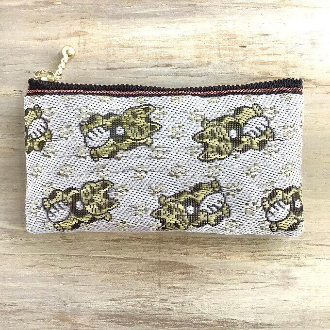 和風でキュートな招き猫柄の畳のヘリで作ったミニポーチです。