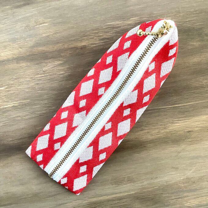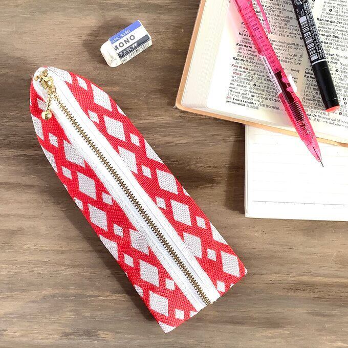 赤地に白の菱形模様がクールな畳縁で作ったペンケースです。