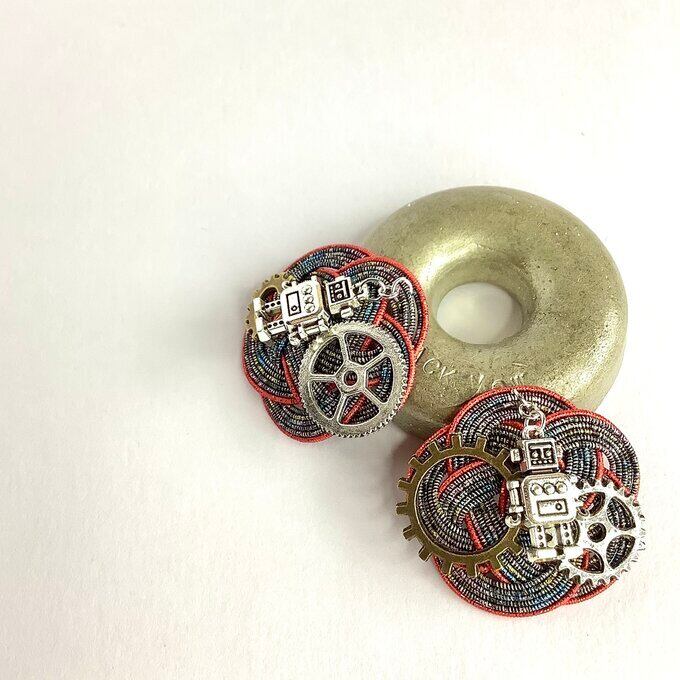 ロボットチャームと、歯車が付いた水引を装着です♪