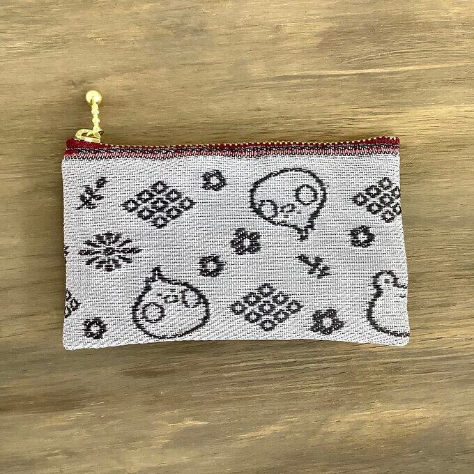 ユニークで可愛い、カエルと鳥の柄の畳縁で作ったミニポーチです。