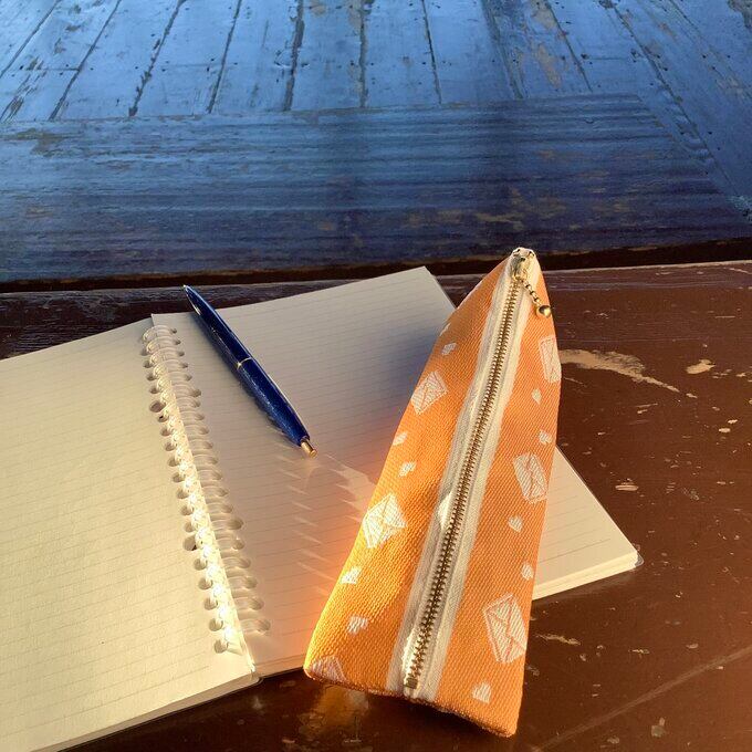 心を込めて書いたラブレター柄の畳縁で作ったペンケースです。