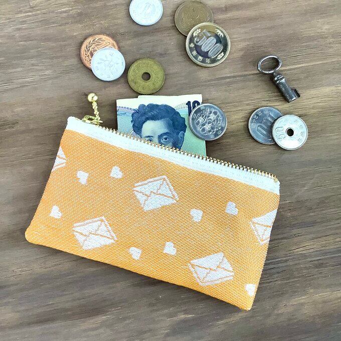 心を込めて書いたラブレター柄の畳縁で作ったミニポーチです。