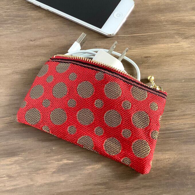ゴージャスでおめでたいイメージの畳縁で作ったミニポーチです。