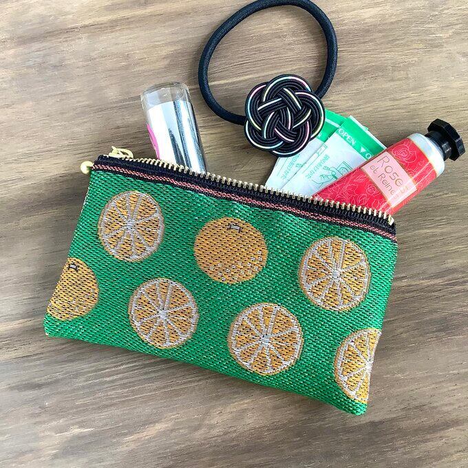 日本人に馴染みのある果物の一つである「みかん」柄が織り込まれた
