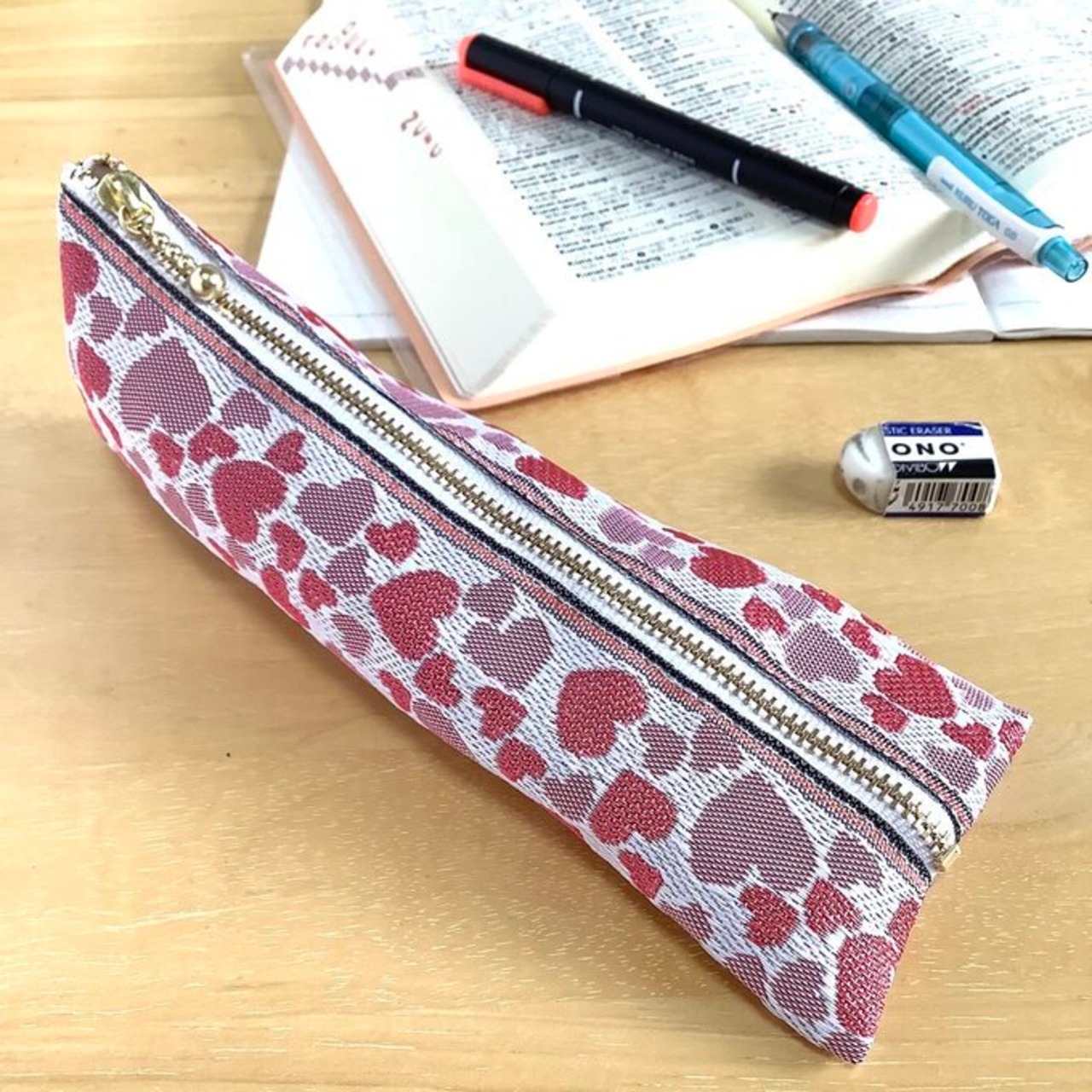 素敵に可愛い、ハート柄の畳縁で作ったペンケースです。