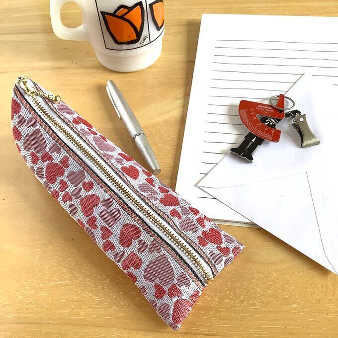 素敵に可愛い、ハート柄の畳縁で作ったミニポーチです。