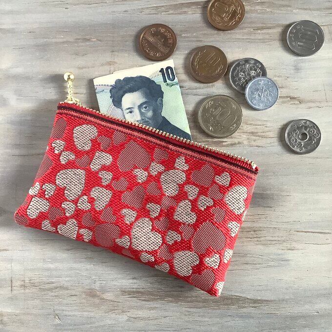 素敵に可愛い、ハート柄の畳縁で作ったミニポーチです。