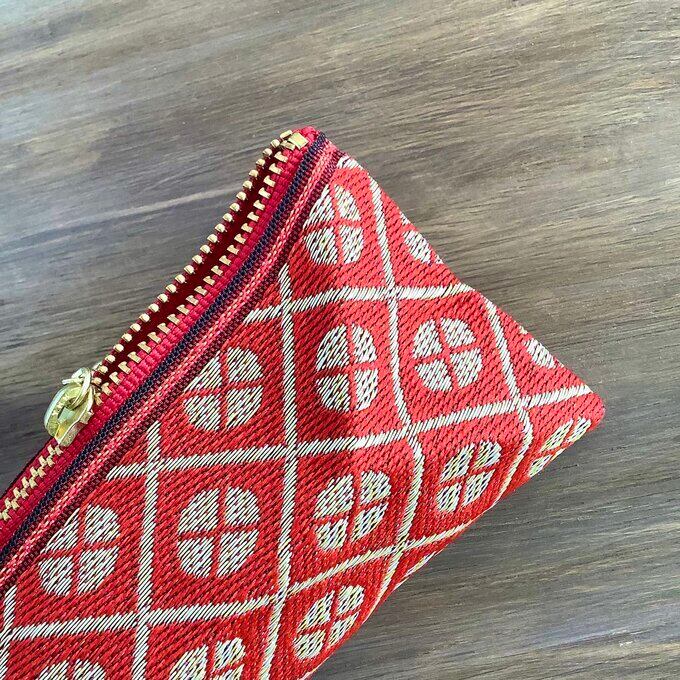 見様によってはポップな柄の畳縁で作ったペンケースです。