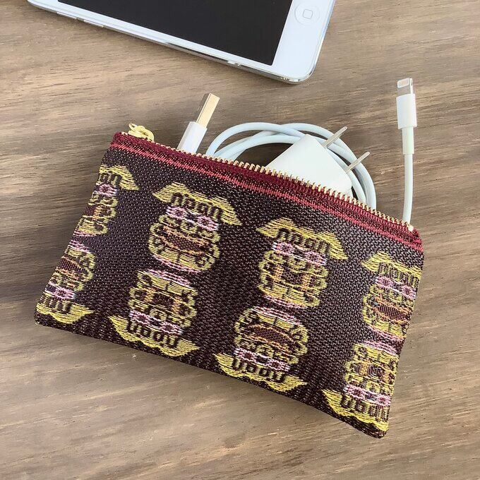 伝説の獣象『シーサー』柄の畳縁で作ったミニポーチです。