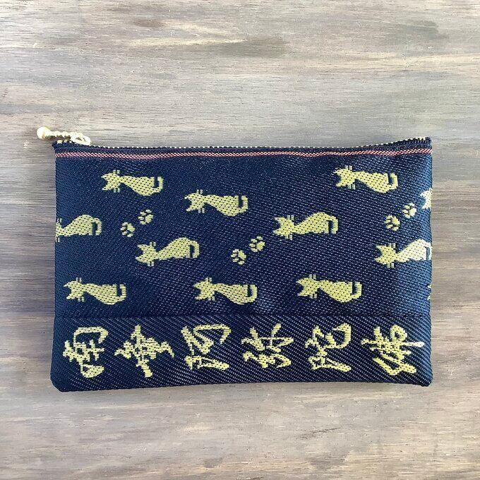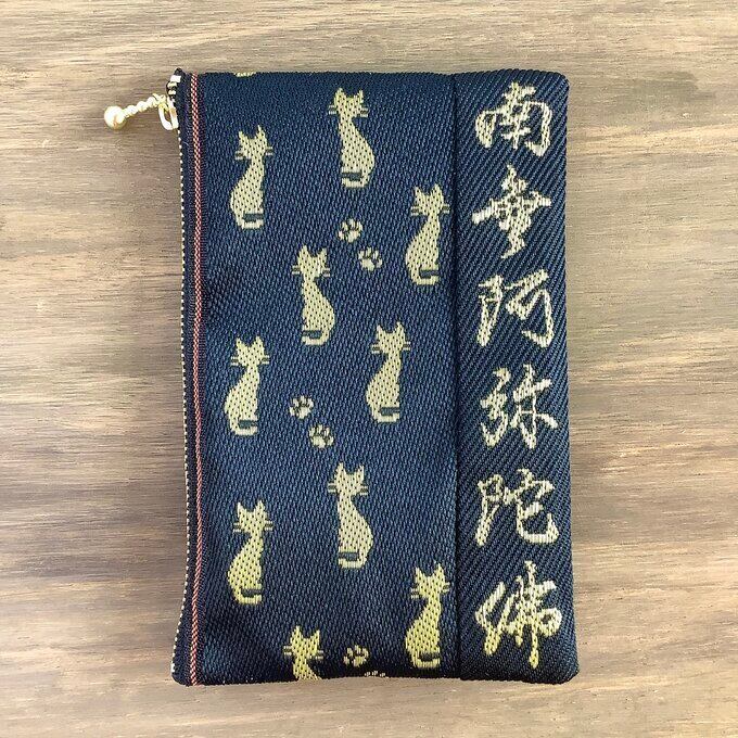 金色の猫が織り込まれた畳縁で作った数珠入れです。