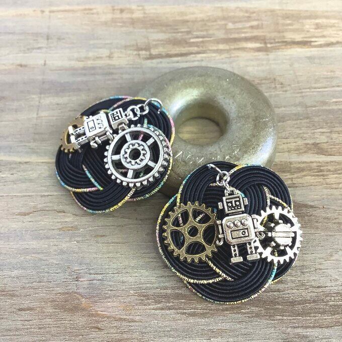 ロボホン 耳飾り 水引製【メカロボ】スチームパンク 歯車 黒