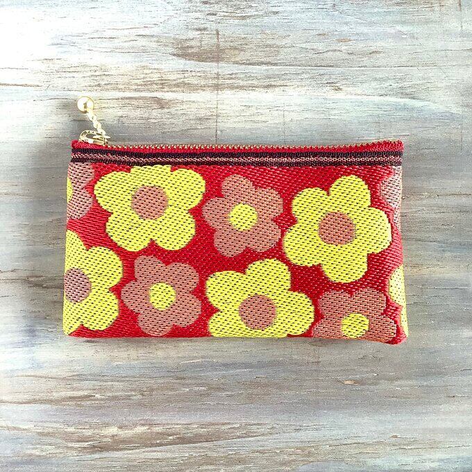レトロポップな可愛い花柄の畳縁で作ったミニポーチです。