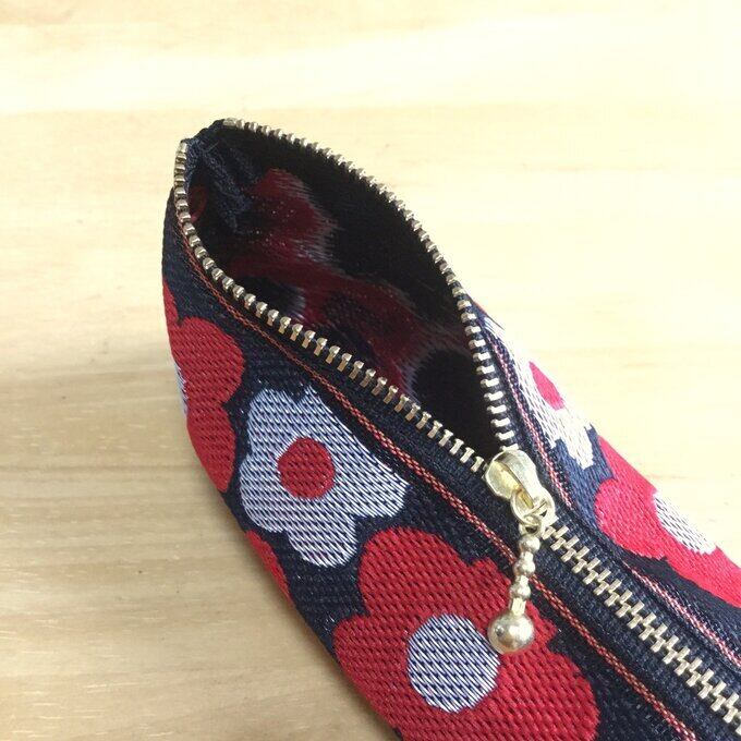 レトロポップな可愛い花柄の畳縁で作ったペンケースです。