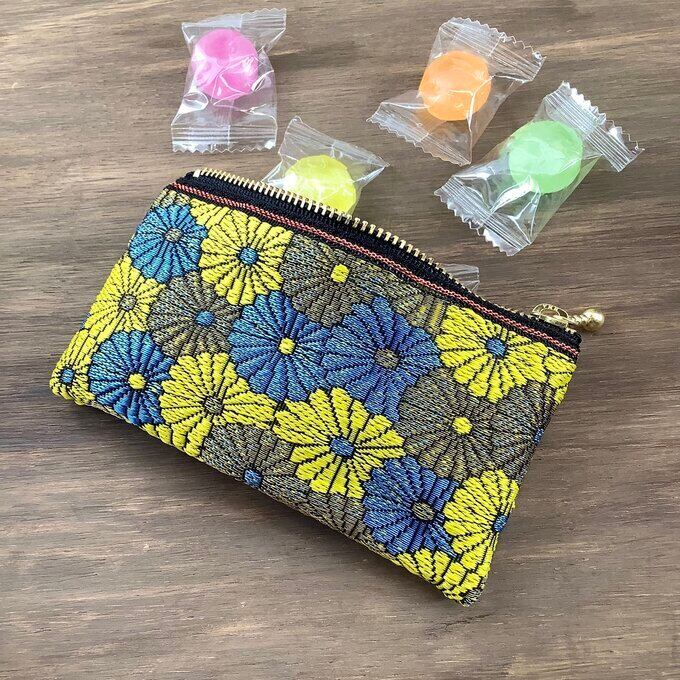 沢山織り込まれた畳縁で作ったミニポーチです。