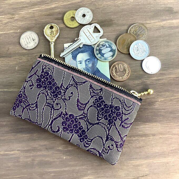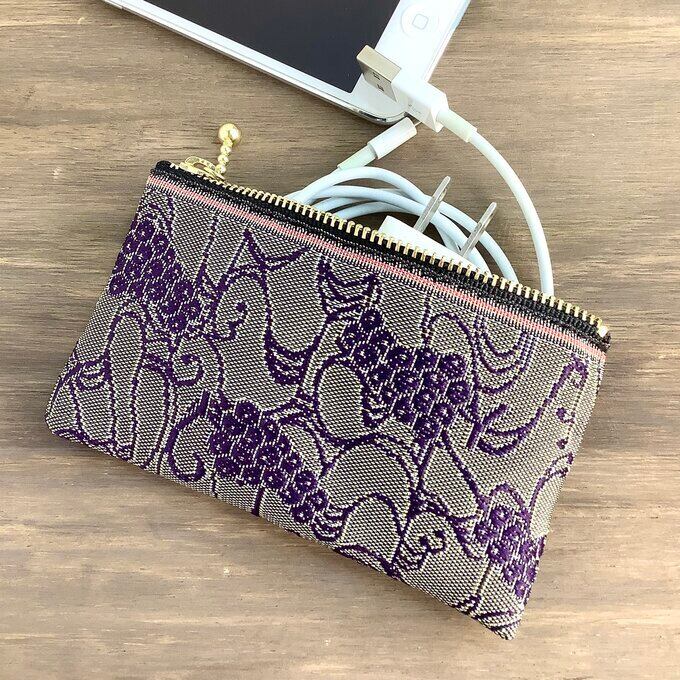 たわわに実ったぶどう柄の畳縁で作ったミニポーチです。