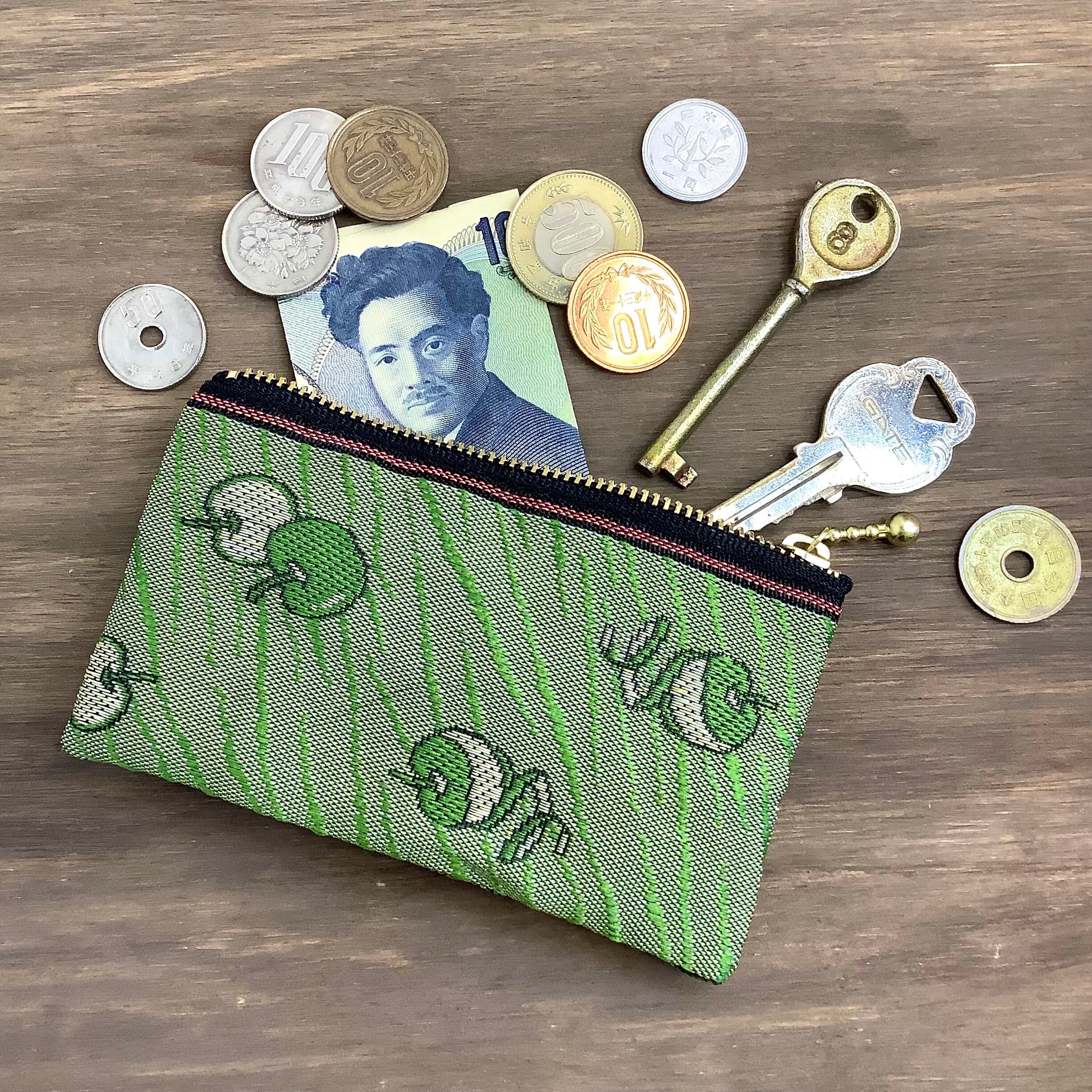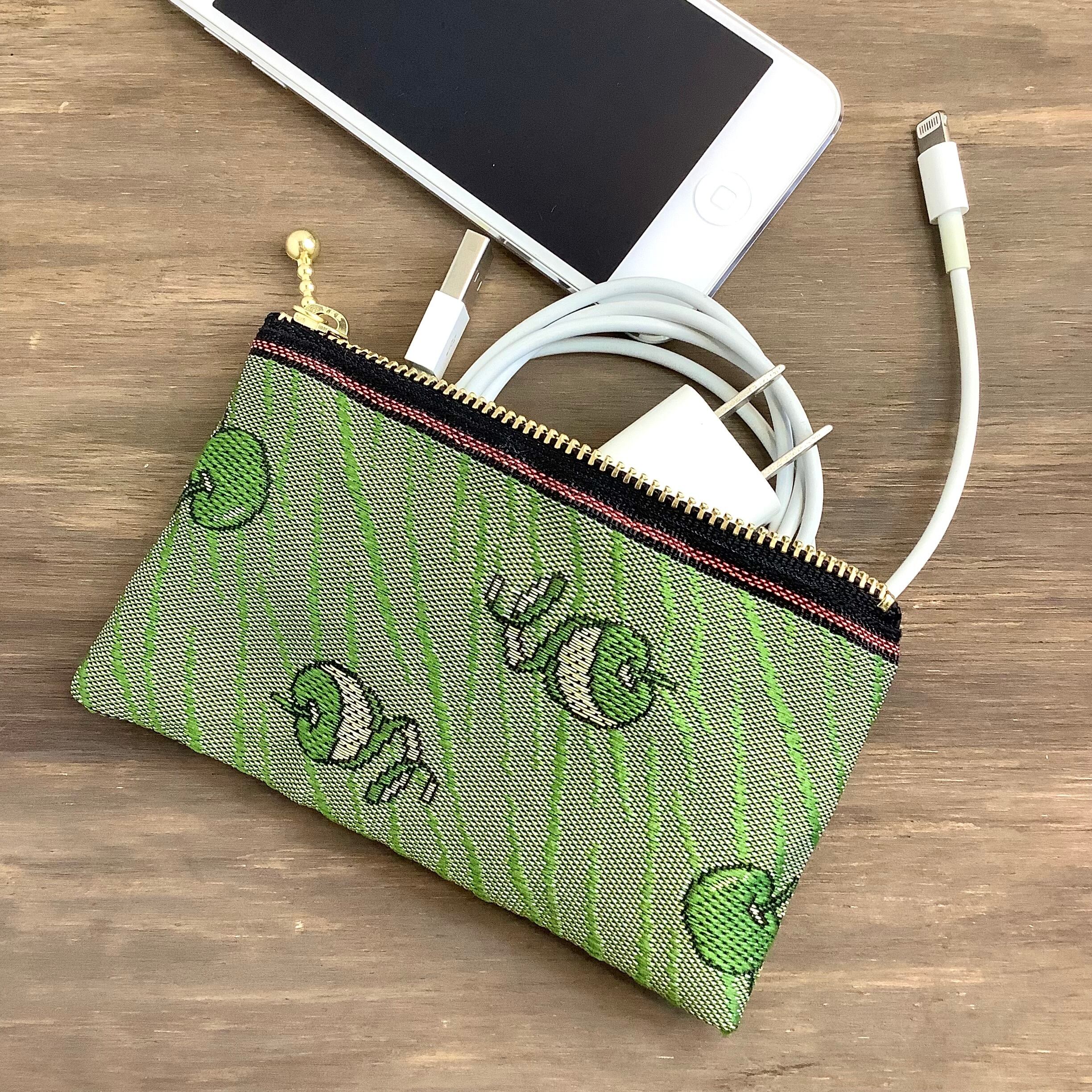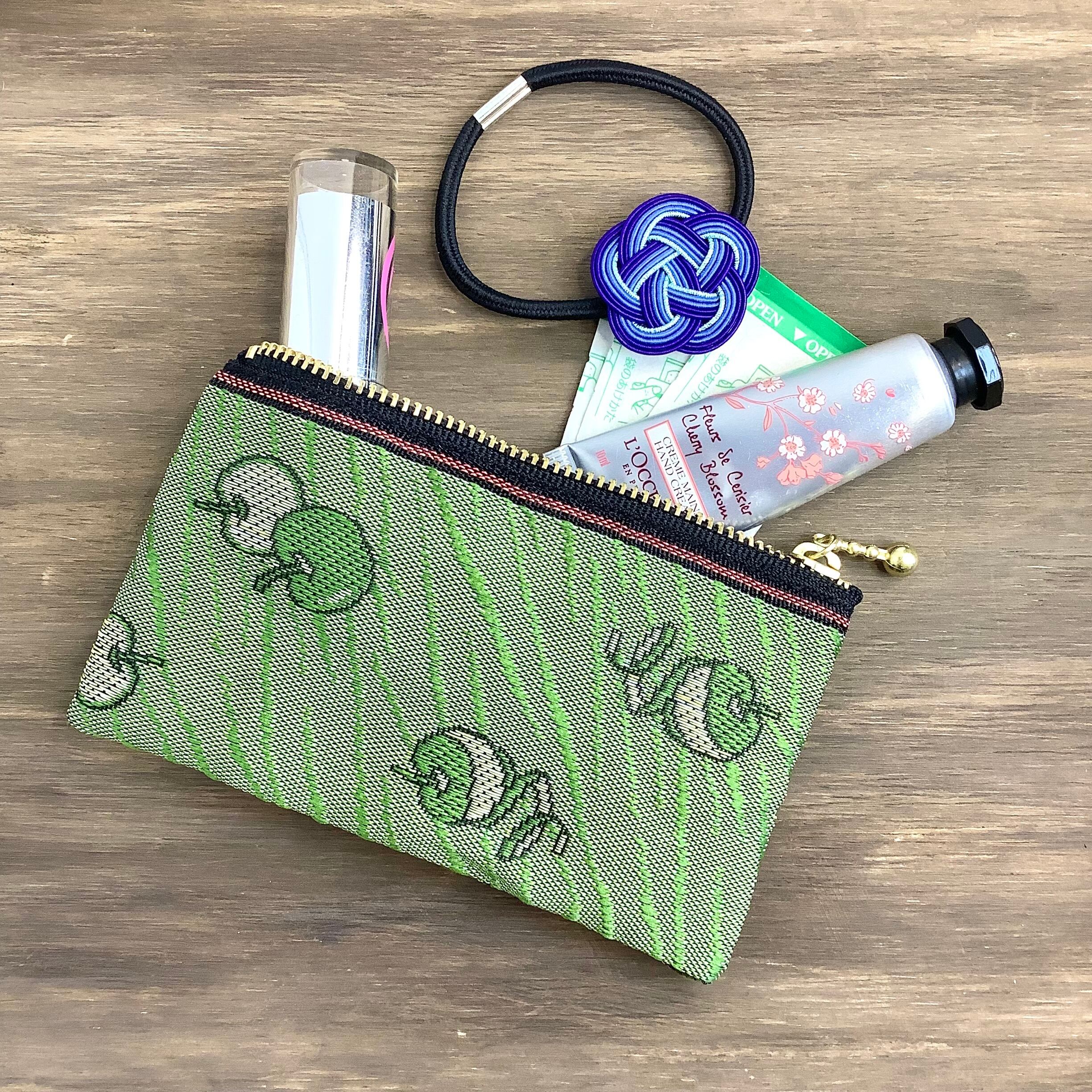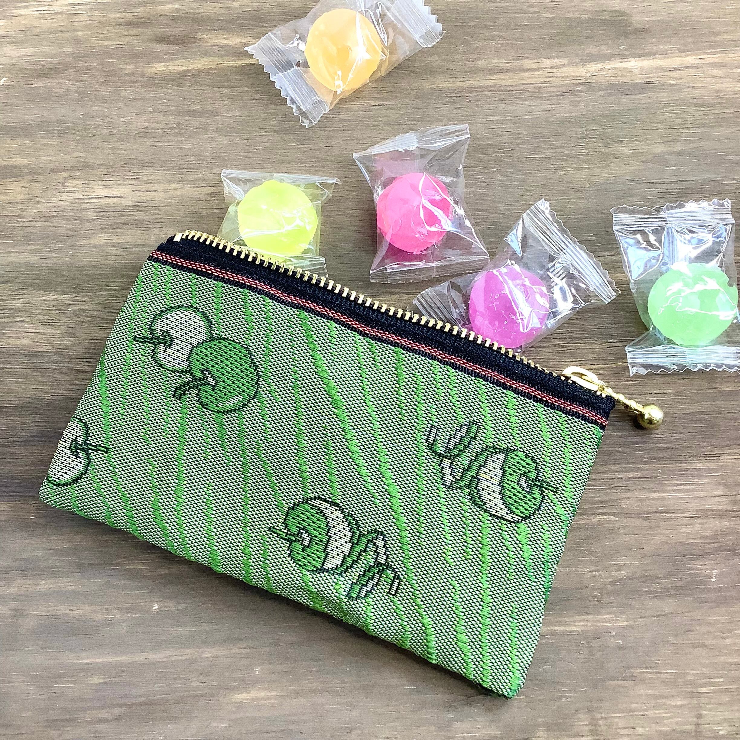 愛らしいりんごの柄の畳縁で作ったミニポーチです。