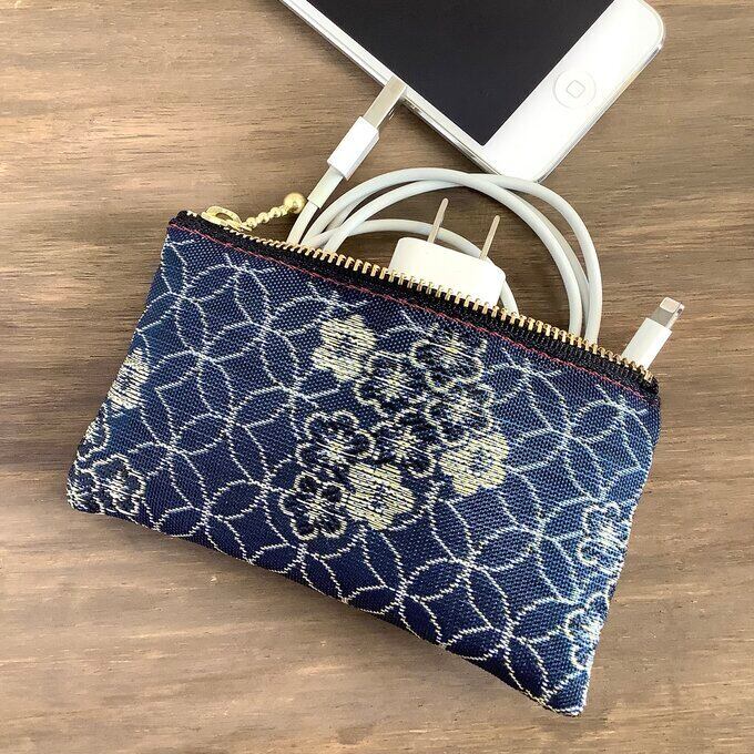 それに愛らしい小花を合わせた畳縁で作ったミニポーチです。