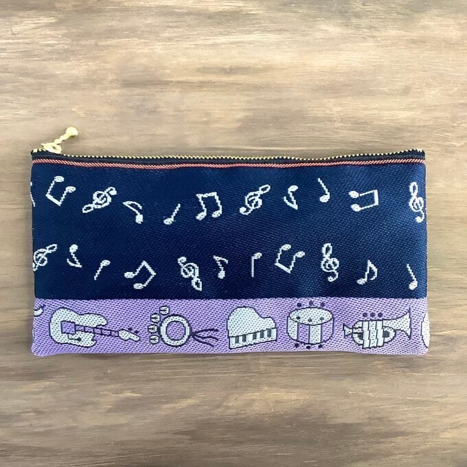 色々な楽器と、楽し気な音符がちりばめられた畳縁で作った