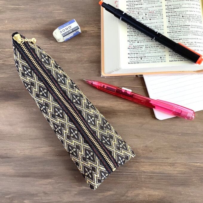 『松皮菱』と呼ばれる伝統的な模様の畳縁で作ったペンケースです。