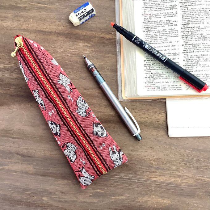 愛嬌がある動物柄の畳縁で作ったペンケースです。
