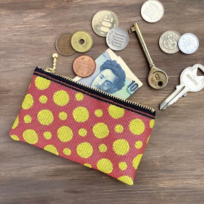 水玉柄の畳縁で作ったミニポーチです。